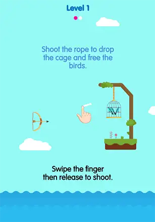 Gameplay: The player’s mission is to rescue birds trapped in cages using a bow and arrow. Careful aim is required to shoot the ropes holding the cages, freeing the birds and completing each level.