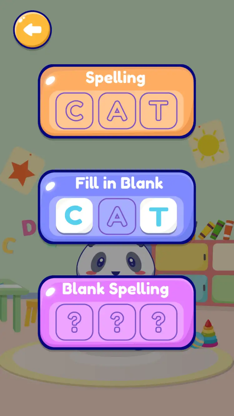 一款專為兒童精心設計的最新教育遊戲。 它通過三種不同的遊戲模式來滿足各種學習偏好:拼寫、填空和空白拼寫。